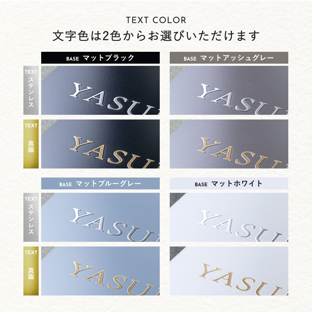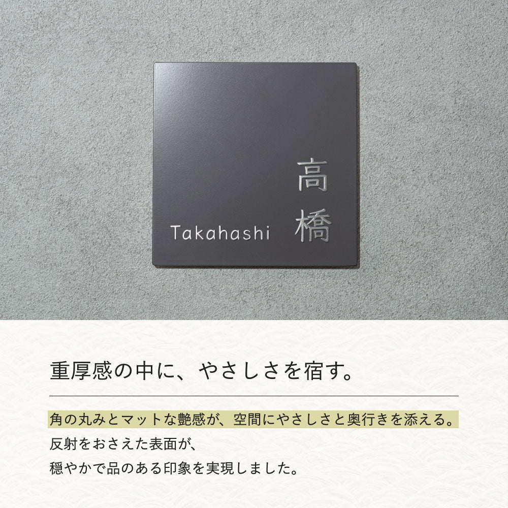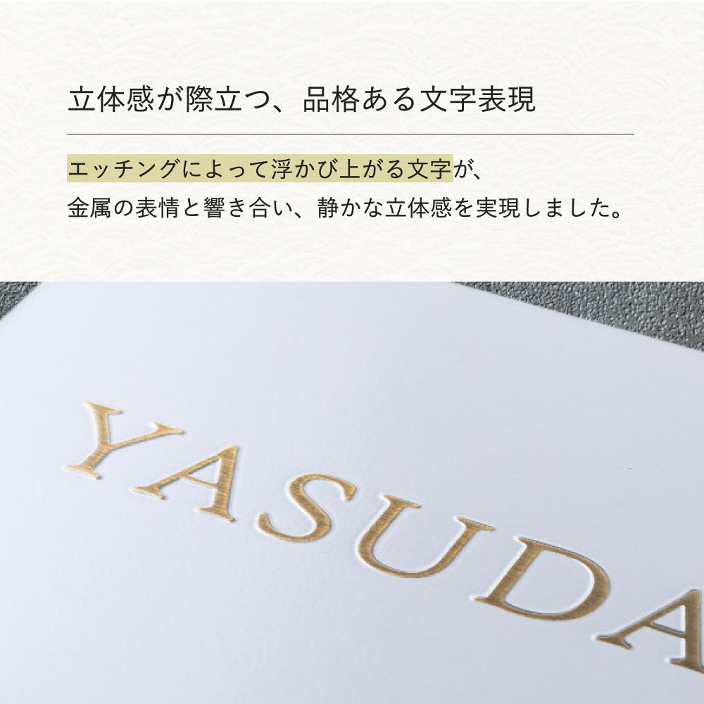 商品説明 マット仕上げが生む柔らかな印象。真鍮とステンレスの上質な魅力を、落ち着いたカラーで優しく包み込む大人の表札。